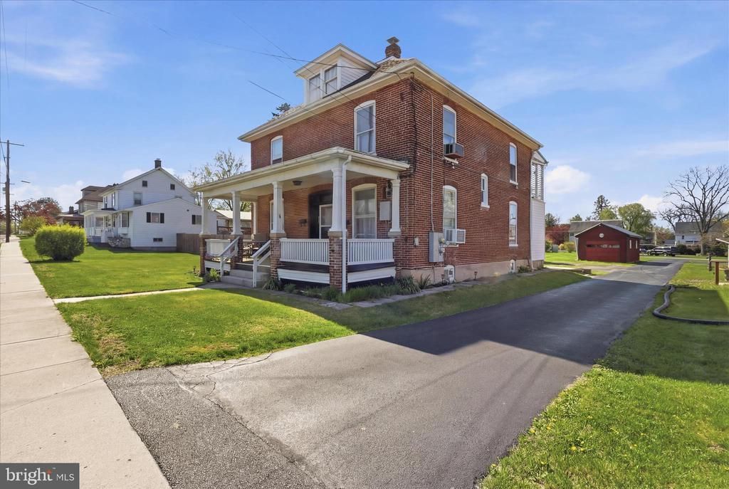 Circa 1900 Brick Colonial in the quiet town of Greencastle on a large .41 acre lot. Currently used as an up/down duplex. Would make a lovely single family home with easy conversion! 1 bedroom, 1 bath downstairs with access to half of the unfinished basement for separate laundry and storage. Upstairs you will find 2 bedrooms and has access to half of the unfinished basement with separate laundry. Roof is newer (architectural shingles) but age unknown. Huge lot with detached garage. Property has asbestos wrapped pipes in basement - do not disturb. Sold strictly AS-IS.