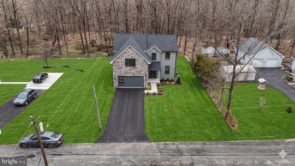 Lawn and driveway are artifically added to enhance the photos. As you walk in, you are welcomed into a light-filled, beautifully designed custom home, where thoughtful craftsmanship and high-end finishes are evident throughout. This fully custom-built new construction residence offers an ideal balance of elegance, comfort, and modern functionality, all set against the serene backdrop of protected open space overlooking a small stream. The main level features engineered hardwood flooring, expansive living areas, and a convenient first-floor powder room. Designed for both everyday living and entertaining, the heart of the home is the chef’s kitchen, complete with brand-new white and light gray maple shaker-style cabinetry, abundant storage, and a generous bartop perfect for hosting and casual gatherings. The kitchen is further enhanced by granite countertops, stainless steel appliances, and a spacious breakfast area that seamlessly connects indoor and outdoor living. Just off the breakfast area, step onto the private deck, ideal for grilling, entertaining, or enjoying alfresco dining, with stairs leading directly to the backyard and views of the preserved land beyond. Functionality continues with a mudroom off the two-car garage, complete with a coat closet—perfect for everyday organization. The home is also equipped with two-zone heating and cooling for energy efficiency and personalized comfort, and is pre-wired for surveillance cameras for added peace of mind. Upstairs, the home offers four generously sized bedrooms and second-floor laundry, thoughtfully placed for maximum convenience. The layout includes two full bathrooms, providing comfort and privacy for family and guests alike. The massive unfinished basement, featuring an additional half bathroom, offers endless potential for future expansion—whether as a media room, home gym, additional living space, or custom retreat tailored to your lifestyle. Combining custom construction, luxury finishes, smart infrastructure, and a peaceful Bucks County setting, this exceptional home presents a rare opportunity to own brand-new, high-end construction in one of Central Bucks’ most desirable locations.